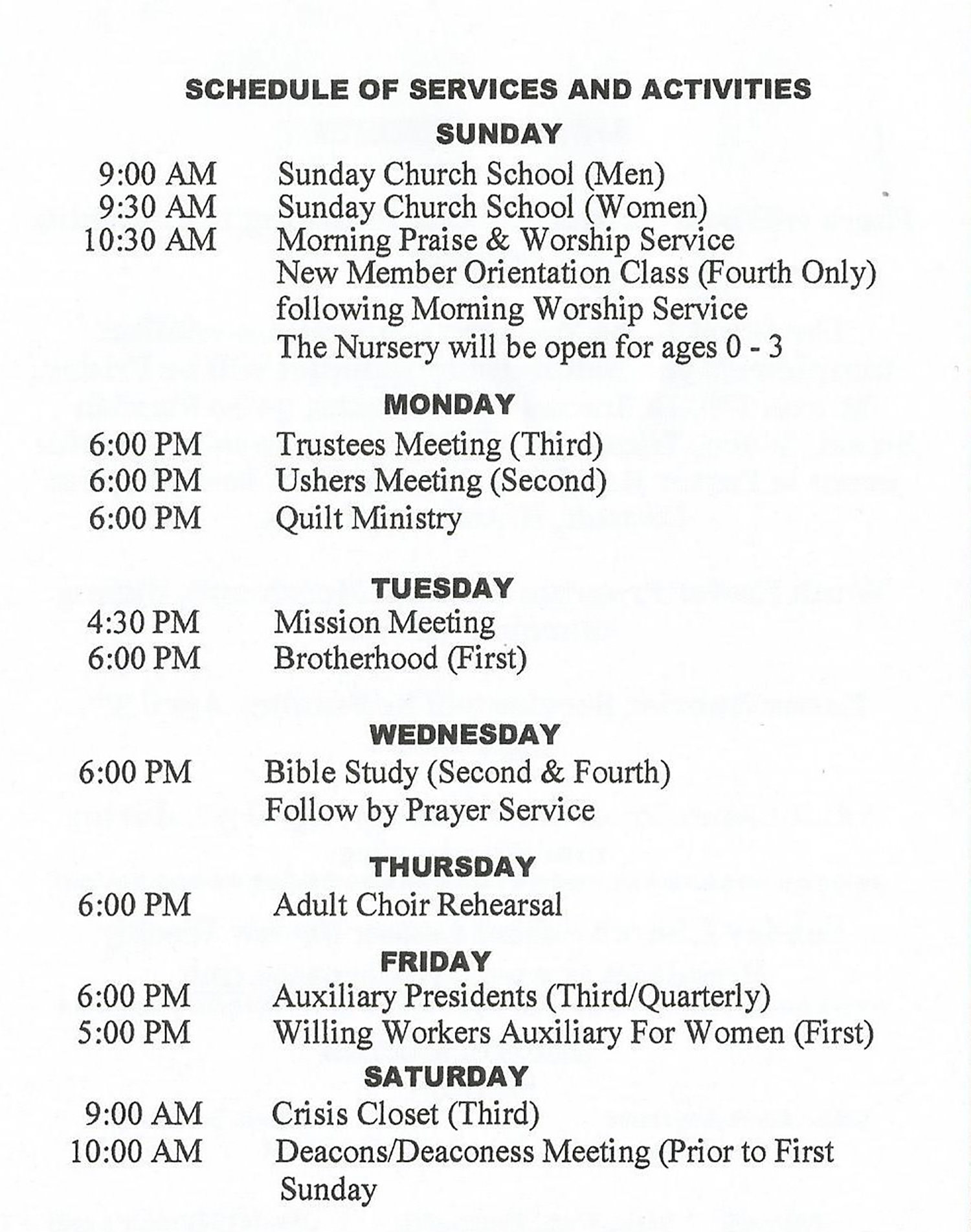 Dr. Bernice Moland’s responsibilities at Greater Peace Missionary Baptist Church included: Director for Curriculum; Director for Church Training Union; and adviser for the Willing Workers Auxiliary for Women.